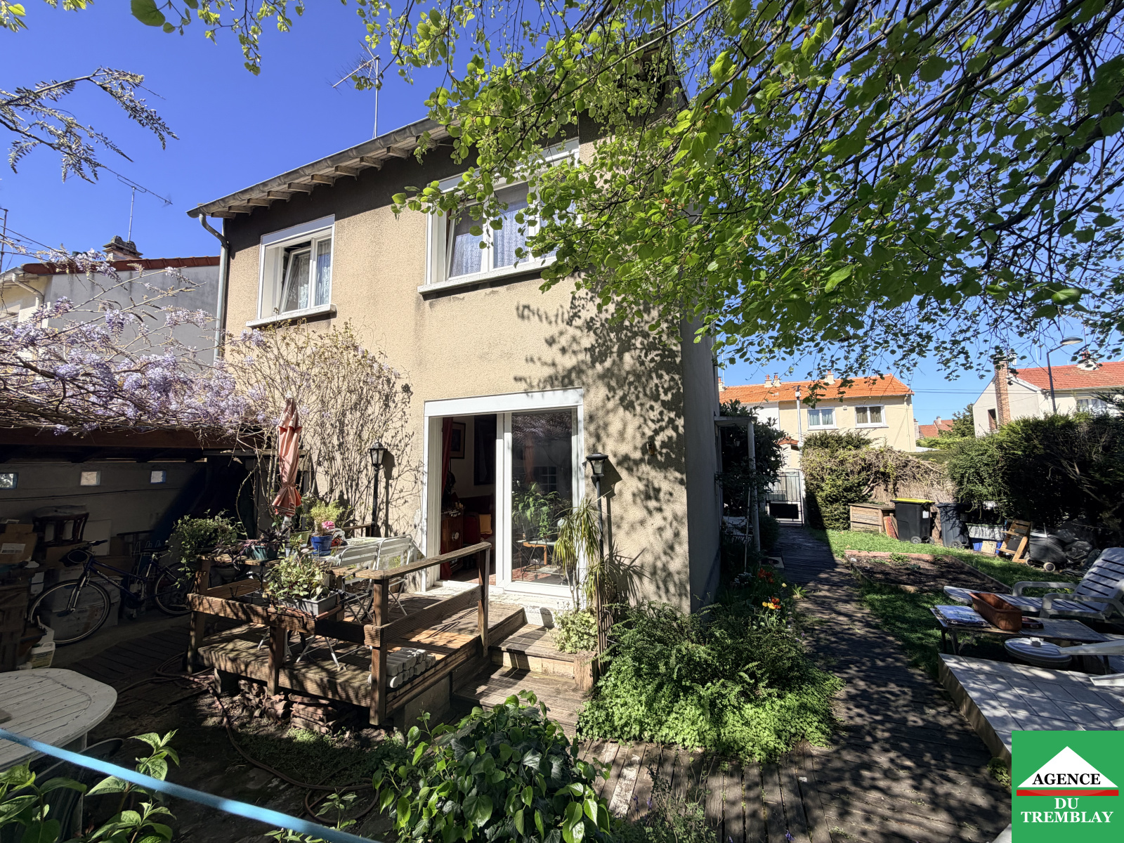 Village Parisien - Pavillon indépendant avec entrée, séjour double sur terrasse, cuisine + coin repas, 3 chambres, salle de bains et WC.